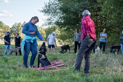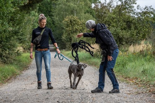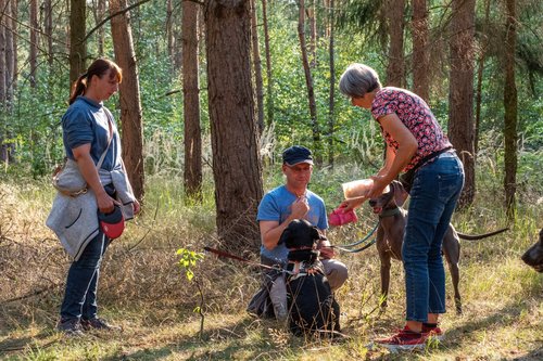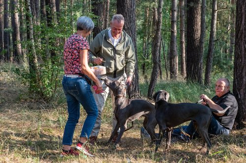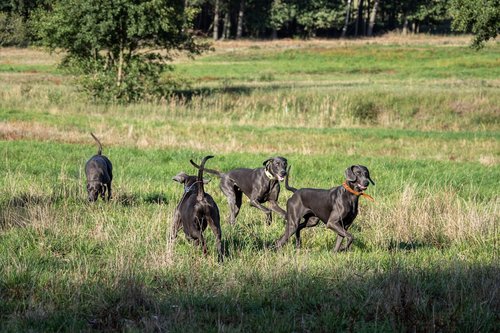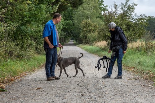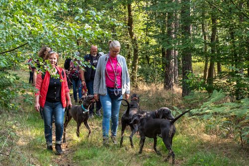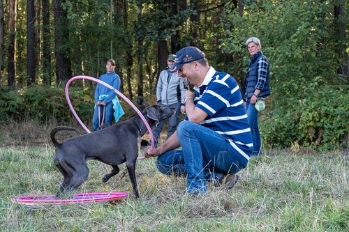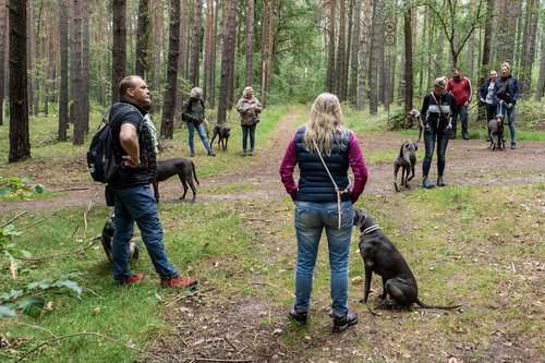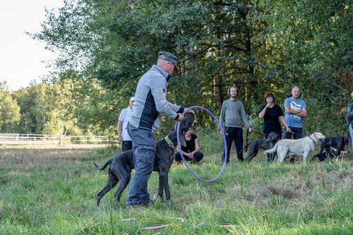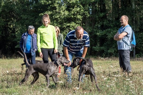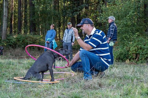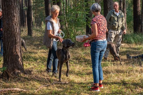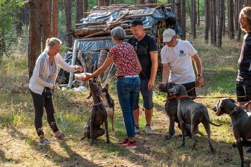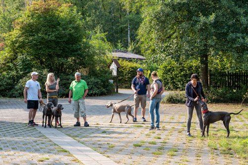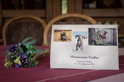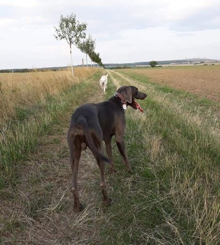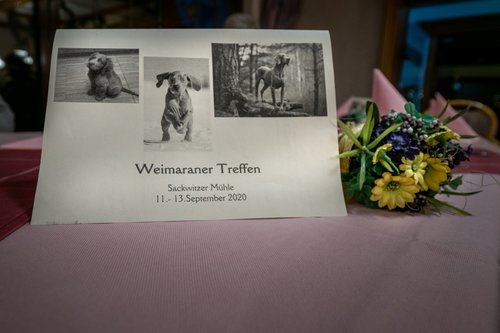 Vom 11. bis 13.09.2020 haben wir gemeinsam mit der Hundeschule Cornelia Siebert aus Bitterfeld Wolfen unser 2. Weimaraner Treffen des Zwinger " Blaue Weimaraner vom Hainich " im " Hotel Sackwitzer Mühle ", in der Dübener Heide nahe Bad Schmiedeberg durchgeführt.. Es war wiederum ein sehr schönes Wochenende, bei bestem Wetter und guter Laune. Gut vorbereitet und organisiert durch Cornelia Siebert und ihrem Mann Michael wurde wieder eine gemeinsame Wanderung sowie kleine Geschicklichkeits Spiele mit den Hunden durchgeführt . Dank Michael Siebert als begnadeter Hobby Fotograf wurde, wie man auf den Bildern sehen kann, die Veranstaltung sehr umfangreich dokumentiert . Wir zeigen hier nur einige Ausschnitte, um einen Eindruck zu vermitteln. Allen Teilnehmern wurde die gesamte Foto Sammlung als Link zur Verfügung gestellt und ist damit eine sehr schöne Erinnerung. Auf gemeinsamen Beschluss aller Teilnehmer wurde entschieden, dieses Treffen als Tradition auch weiterhin fort zu führen. Zur besseren Kommunikation aller untereinander wurde eine WhatsApp Gruppe gebildet um weitergehende Erfahrungen miteinander auszutauschen. Wir wünschen allen weiterhin viel Freude mit ihren geliebten Vierbeinern, hoffen das alle gesund bleiben und freuen uns schon auf das Treffen 2021.